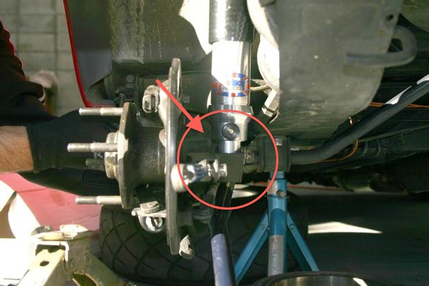 ショックの留め金(固定ボルト)を外すと、リアのラジアスアームはストンっと落ちてくるので注意が必要です。