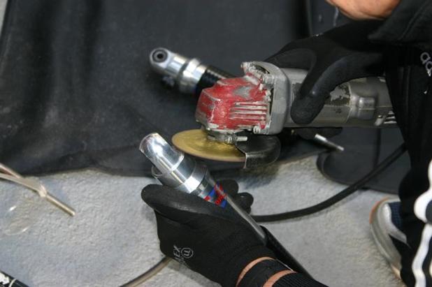 ショックアブソーバー本体、またはラジアスアームのどちらか一方だけの加工では削り幅が大きいので破損させてしまう可能性が高くなる。